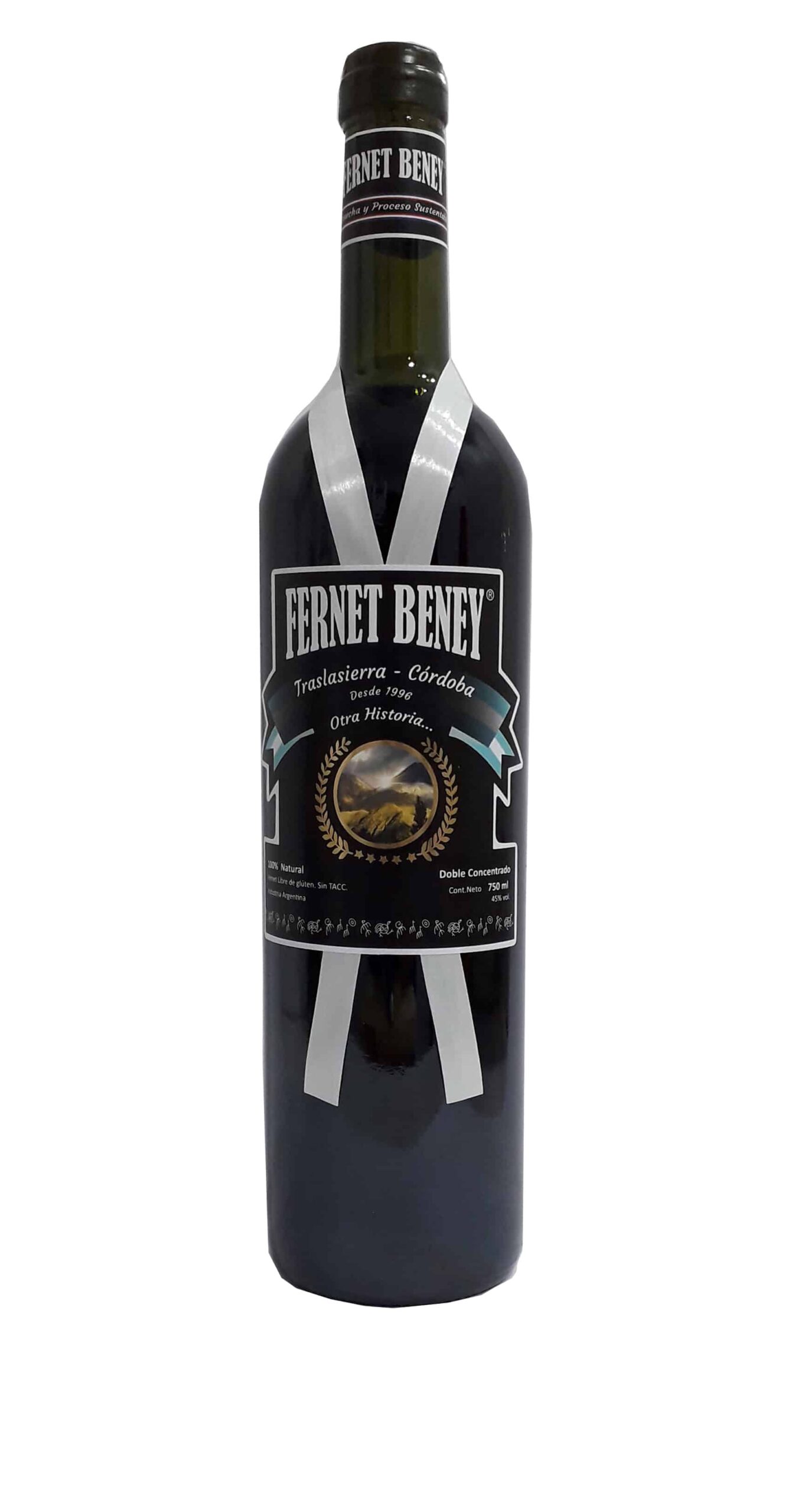 1 botella de fernet Beney x 750cc + 1 vaso cerámico de 600cc.